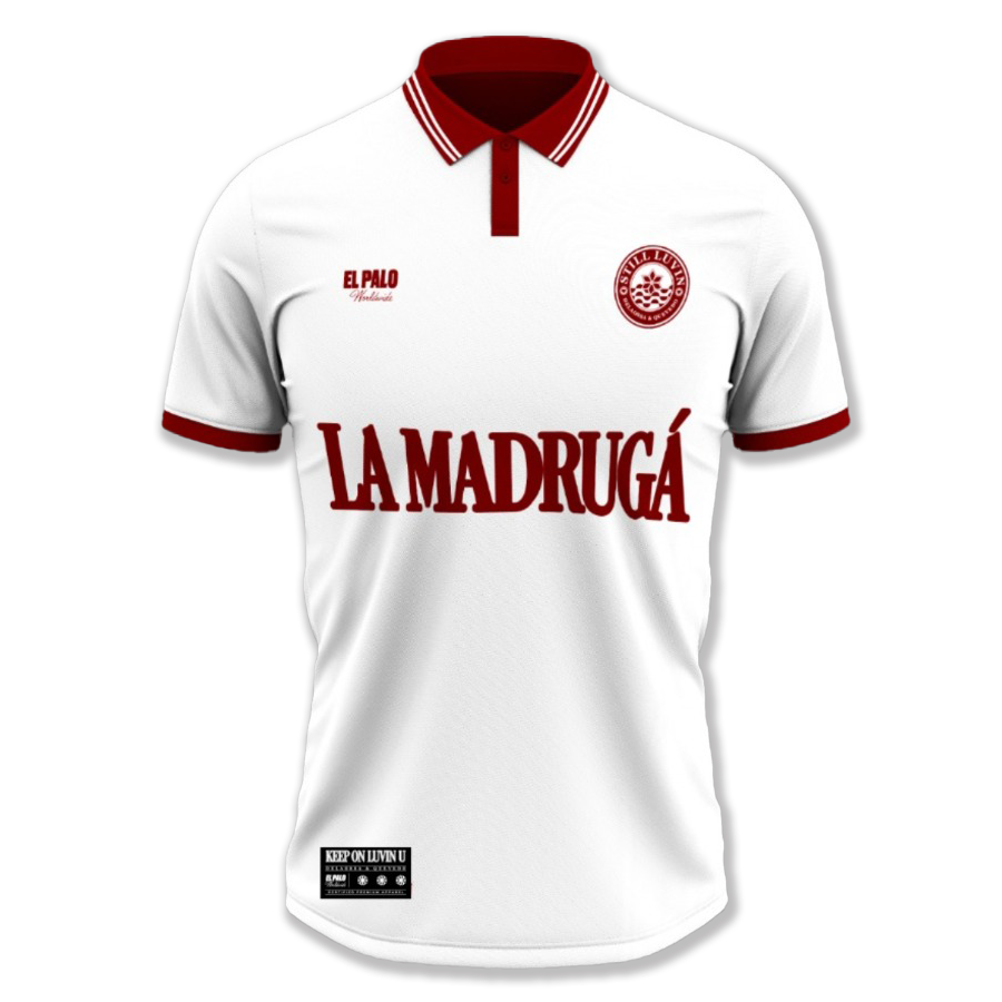 Camiseta de fútbol en tejido de 130 grs, cuello y mangas en tricotosa y escudos engomados.