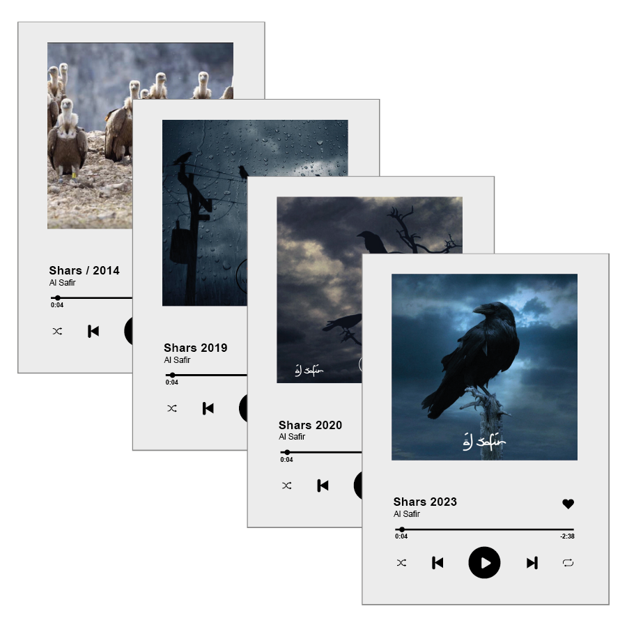 Pack Song Glasses firmados por Al Safir, de sus canciones Shars 2014, Shars 2019, Shars 2020 y Shars 2023.