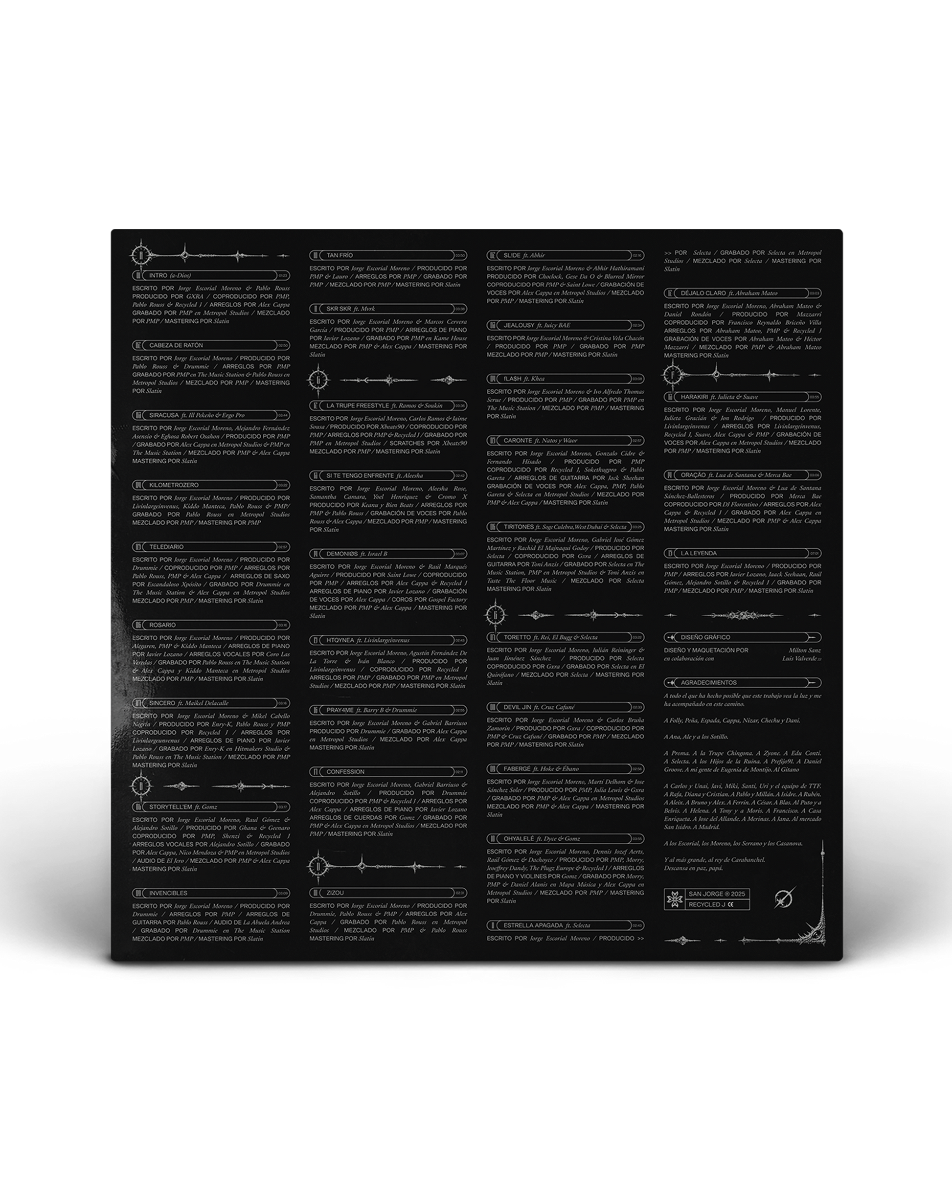 (Foolding de 300gr Estucado Blanco) + Sobres paper bag impresos a color. Contiene 32 tracks incluyendo en exclusiva el nuevo single “LA LEYENDA”